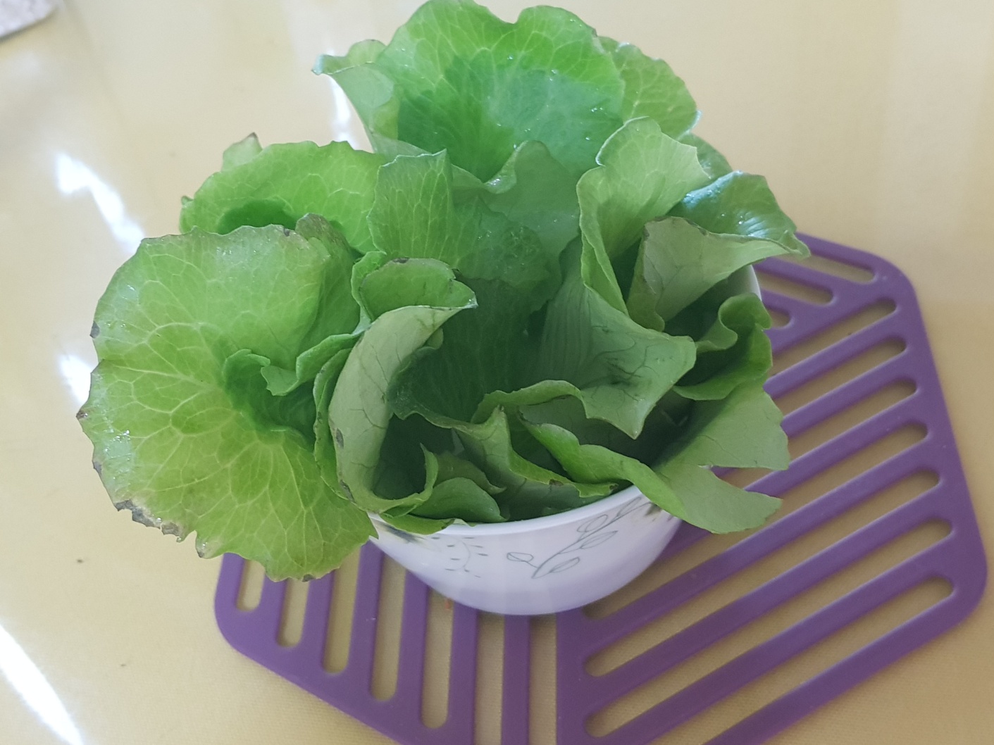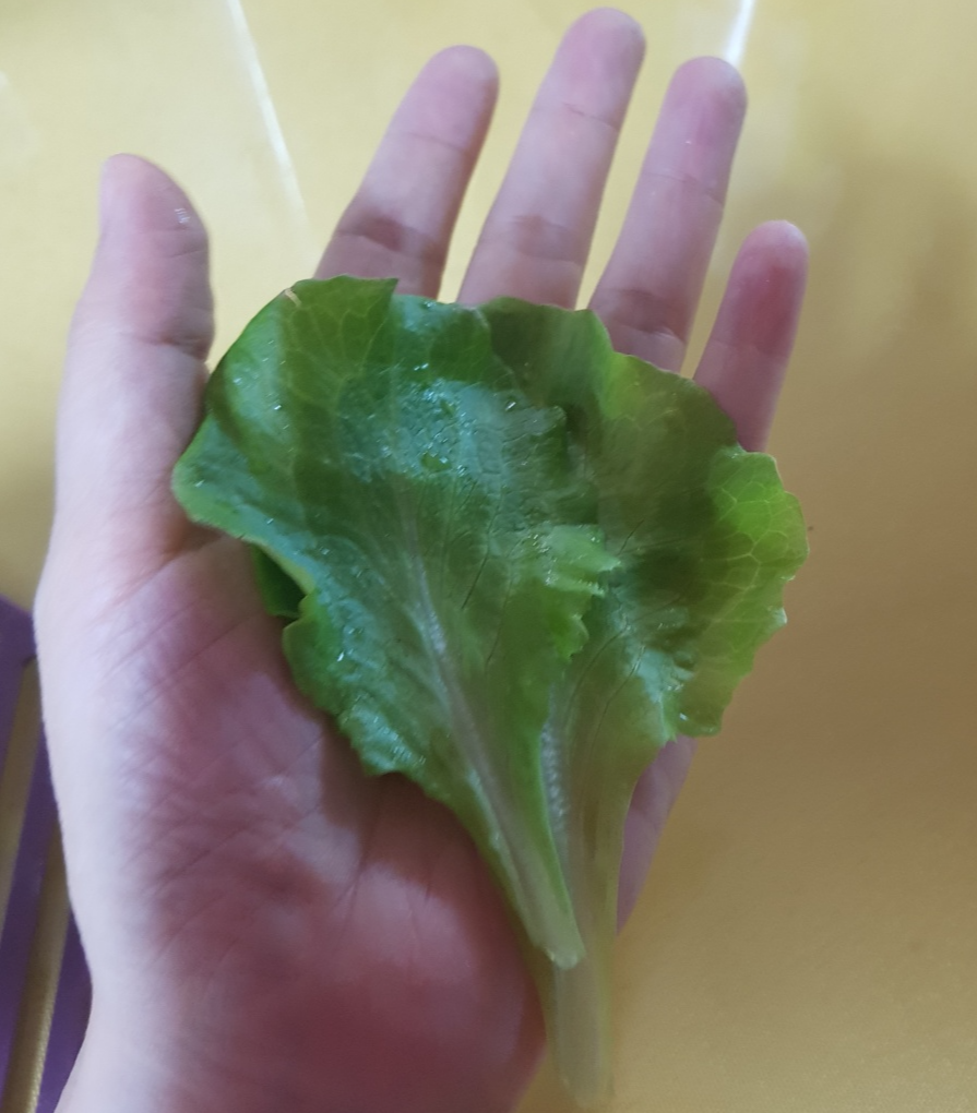몇 번의 실패 끝에 드디어! 식물등 아래에서 키운 상추를 첫 수확했어요.