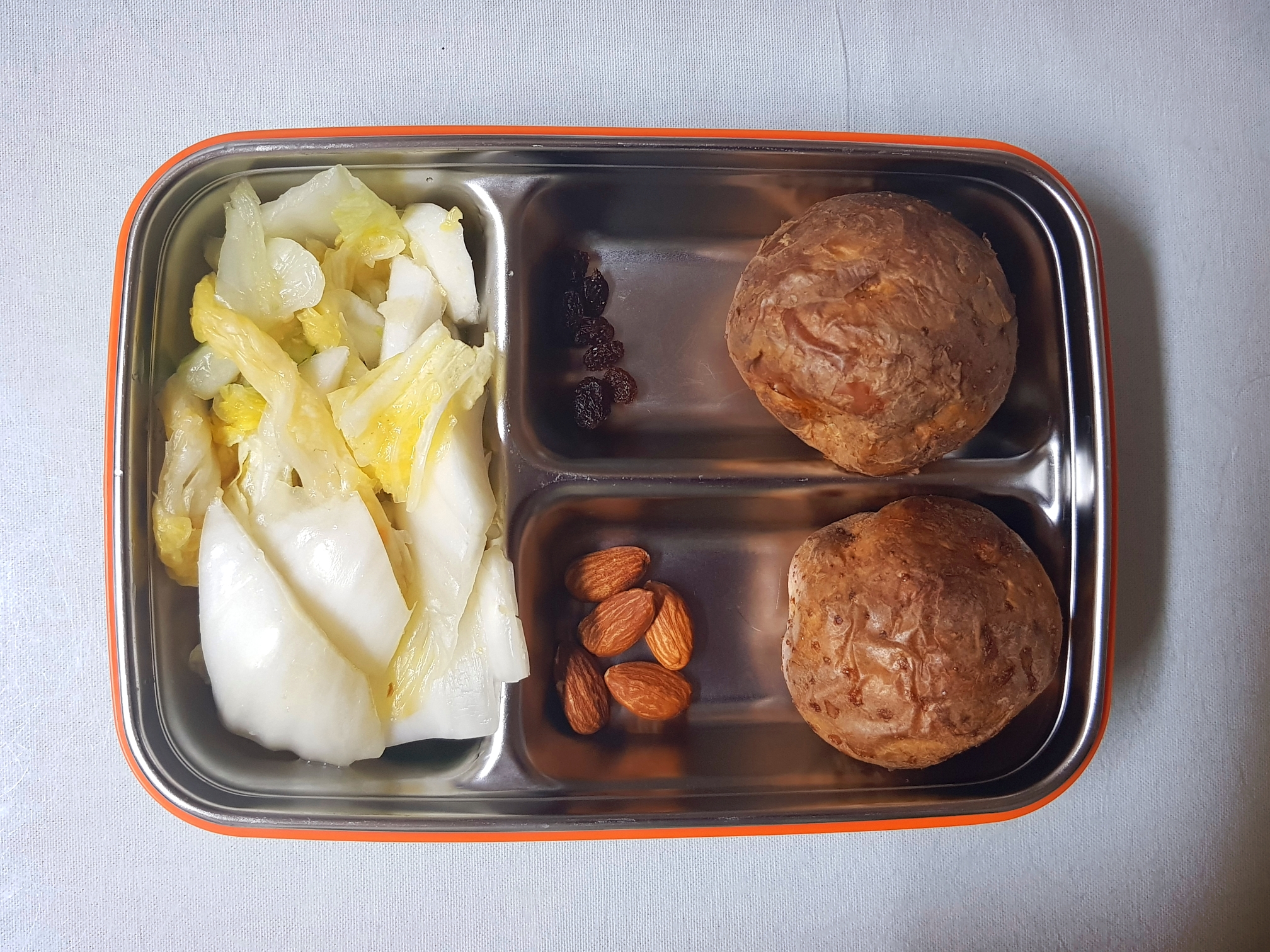 오늘은 백김치와 감자 2개만 가볍게 먹기로. 약간의 아몬드와 건포도 함께. 배부르지 않아 장부가 편안한 것 같다. 좋아 좋아^^~