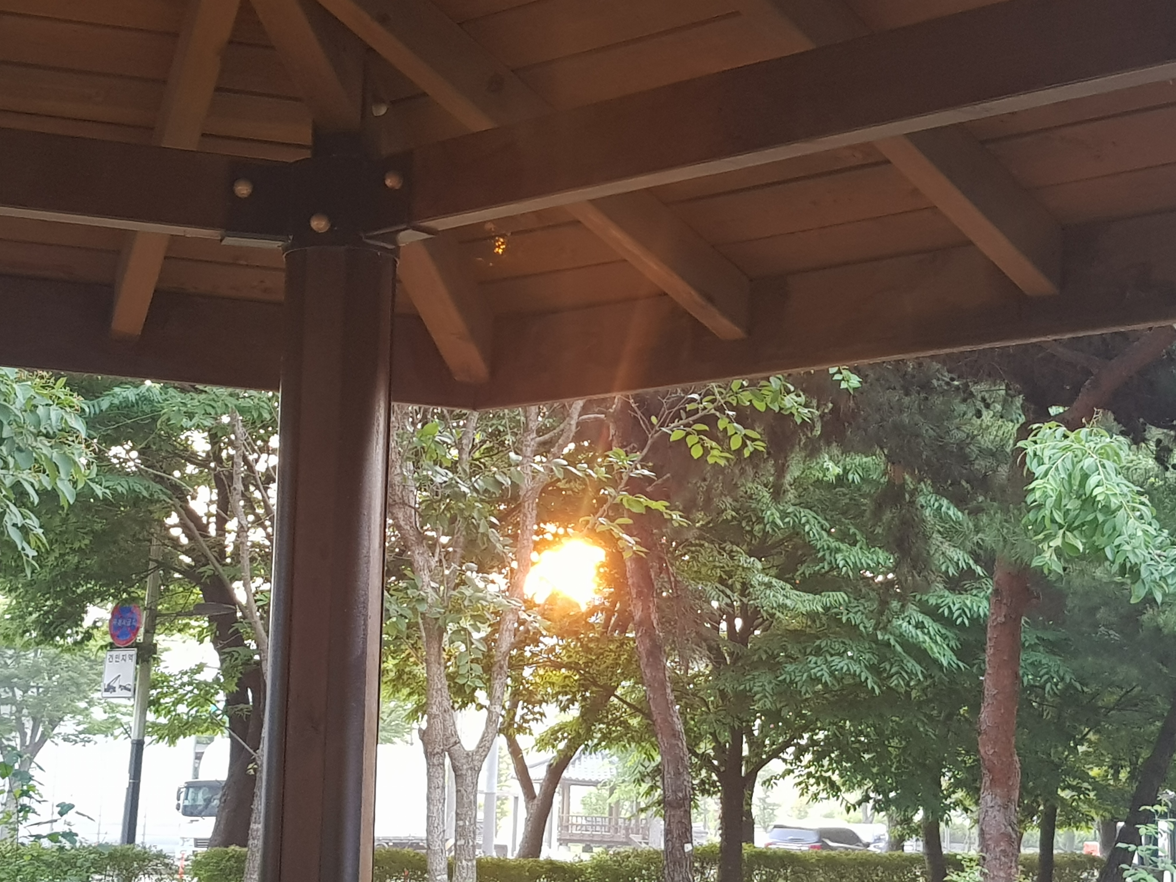 햇빛 명상하기 좋은 시간대와 장소 물색 중. 여기다 했지만 터주대감이 이미 있어 다른 곳 이동. 아차차 아침의 해는 생각보다 빨리 움직인다. 그래도 예쁜 해 계속 함께 할 수 있어 괜찮다. 아직 햇빛 알레르기는 조심해야 돼서 강한빛은 조심스러움. 어제 6시 이후 나왔다가 자외선 반응이 느껴짐. 다행히 외부 피부 반응은 없었음